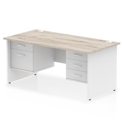 Impulse 1600 x 800mm Straight Office Desk Black Top White Panel End Leg with 1 x 2 Drawer and 1 x 3 Drawer Fixed Pedestal